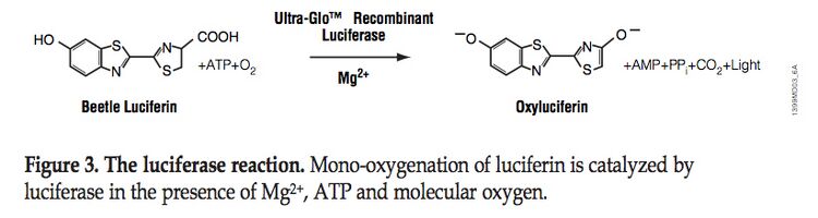 The cell viability assay that we will use is from Promega, Inc., and is called the CellTiter-Glo assay. The CellTiter-Glo reagent contains a recombinantly produced Luciferase that catalyzes the mono-oxygenation of beetle luciferan to oxyluciferan + light. The reaction requires Mg2+ and ATP -- and the source of ATP for the reaction is from your cells. Therefore, the extent of reaction (i.e. light generation) is related to the number of live cells within the culture. Promega reports that the reaction proceeds linearly within the range of 15 and about 50,000 cells. The doubling time of our SKOV3 cells is approximately 30 hrs, therefore our experiment will be safely within this range.