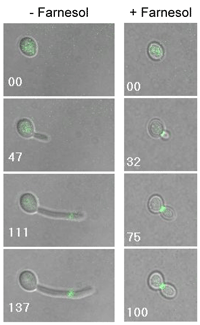 Candida can grow vegetatively as yeast, hyphae or pseudohyphae. It posesses the ability to interconvert between these different morphological forms in response to its environment. There is a strong correlation between morphological interconversion and pathogenicity. The morphological transition is regulated, in part, by farnesol. Farnesol is synthesized by Candida and it blocks the conversion of yeast to hyphae or pseudohyphae in response to most, if not all, of the chemical and environmental morphogenesis inducers. Farnesol also acts as a virulence factor for systematic Candida infections in a mouse model, and the response to farnesol is unique to Candida because it does not block the morphological transition in the other dimorphic fungal species we have tested. We are part of a multidisciplinary team studying the role of farnesol. We are determining how Candida interprets signaling by farnesol at the level of gene regulation and expression, and then executes this regulation through changes in cell structure, dynamics and function. We are also examining the influence of farnesol on the interactions between "Candida" and the host immune system.