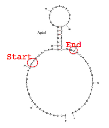 Aptamer flanked by primers with added Poly-A (n=10) tail: