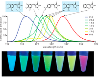 Paige et al reasoned that a similar stategy could be tried using aptamers, and were able to synthesize a small molecule analog of HBI, which they termed dimethoxy-HBI (DMHBI). They then reasoned that aptamer selection for RNAs that would bind the small molecule may produce sequences capable also of mediating its fluorescence . To this end, they performed several rounds of Systematic Evolution of Ligands by EXponential Enrichment [3] and were able to select several aptamers capable of binding and inducing fluorescence in a range of colors [1].