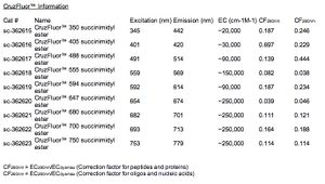 - CruzFluor™ 750: Ex (nm) 753 Em (nm) 779