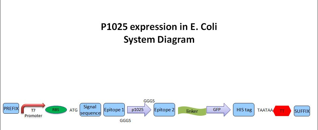 - Construct parts for E. coli for production of the p1025 fusion peptide. Obtain antibodies against epitopes and maybe p1025 itself.