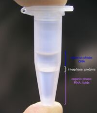 - Spin in a microfuge at top speed for 1–2 min to separate the phases.