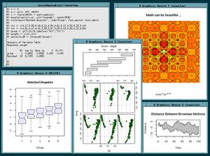 R is widely used for statistical software development and data analysis, and has become a de-facto standard among statisticians for the development of statistical software. R's source code is freely available under the GNU General Public License, and pre-compiled binary versions are provided for Microsoft Windows, Mac OS X, and several Linux and other Unix-like operating systems. R uses a command line interface, though several graphical user interfaces are available. wikipedia entry on R
