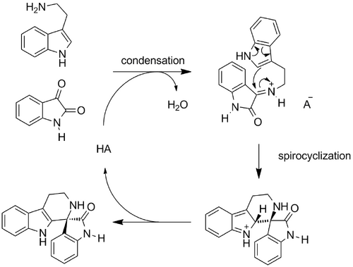 It is perhaps surprising that there are still no examples of Lewis acid-catalyzed asymmetric PS reactions. In a recent study (10.1016/j.tetlet.2011.08.071) a small number of chiral Lewis acidic complexes were shown to effect conversion in a PS reaction between tryptamine and isatins, but there was negligible enantioinduction; high product ee was ultimately achieved with Bronsted acid catalysis, to which we now turn.