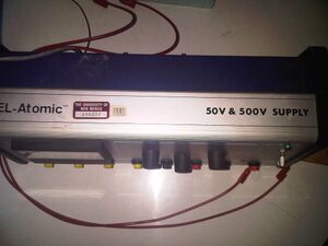 - We connected the power supply to the plate voltage connectors using bannana plug patch plugs and applied 500V. We also connected a multimeter in parralel with the apparatus and power supply to better monitor the voltage.