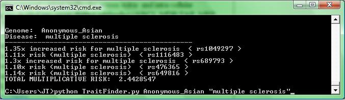 >>python TraitFinder.py Anonymous_Asian "multiple sclerosis"