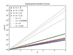 And here's the first assignment data (logarithmic scale for plotting the exponential function, linear scale for plotting the logistic function):