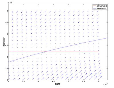 [[Image:BC-VM20FixedPoint.jpg|thumb|400px|center|Nullclines and fixed point for plausible parameter values]] | |||