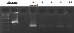 - 3 samples, ~24 h exposure to pH values of 4.5, 5 and 6, 1x TE buffer, 18mM MgCl2