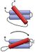 '''At left''': A ''de novo'' designed switch protein. The lever arm helix (red) packs across the scaffold helices (blue). | '''At left''': A ''de novo'' designed switch protein. The lever arm helix (red) packs across the scaffold helices (blue). | ||