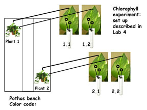 - At each lab bench there are two replicate plants of each species, and four sample tubes.