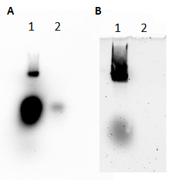 To verify that the uppermost bond did correspond to a folded plate, the gel was stained with SYBR Gold and scanned (fig. 59B).