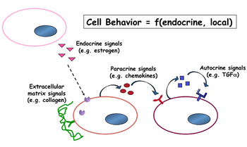 Our lab is focused on addressing this basic question in the context of endocrine signaling. Endocrine hormones (such as estrogen) are secreted into the blood stream and affect cells that are at great distances from the hormone source. We are currently focusing on how estrogen interacts with local signals to regulate cancer cell behavior. Our lab uses a variety of high-throughput experimental methods to gather information about the cellular signaling network, and then employs computational models to interpret the data. Ultimately, we believe our models will be utilized to identify new drug targets and match patients to the most effective drugs for their individual tumor characteristics. | Our lab is focused on addressing this basic question in the context of endocrine signaling. Endocrine hormones (such as estrogen) are secreted into the blood stream and affect cells that are at great distances from the hormone source. We are currently focusing on how estrogen interacts with local signals to regulate cancer cell behavior. Our lab uses a variety of high-throughput experimental methods to gather information about the cellular signaling network, and then employs computational models to interpret the data. Ultimately, we believe our models will be utilized to identify new drug targets and match patients to the most effective drugs for their individual tumor characteristics. | ||
