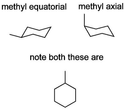 ...i.e. substituents that are "up" in the usual representation on the right in the scheme above are not necessarily axial. We'll come to this in more detail when we talk about how the ring moves.