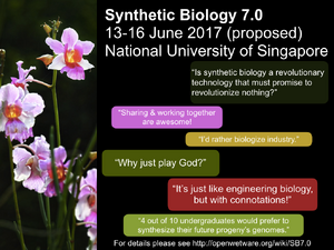 The 7th International Meeting on Synthetic Biology (aka, SB7.0) will take place 13-16 June 2017 at the National University of Singapore. Please see SB7.0.info for the official meeting website and all formal information and resources.