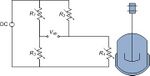 Now imagine a Wheatstone bridge made out of four identical thermistors, as shown in figure 3. One of the thermistors (R3) is attached to an odd-looking blue lab apparatus that varies in temperature. The other three are maintained at a constant 20°C.