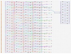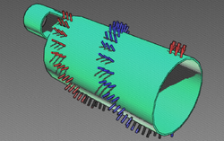 - In order to bind footing DNAs on its surface spirally, 10mer long DNA strands which we call footings of footings come up from the cylinder's surface. After the cylinder with the footing of footings are formed, one of the three legs of DNA spiders is connected to a specific strand at the start point on the cylinder's surface. Then the footings get connected to the footing of footings. The footing tracks, each of which consists of three lanes of the footings, enable DNA Spiders to orbit the cylinder. In detail, there are two tracks of DNA footings and two spiders can walk on each track. In addition, in order to make it easy to observe the direction of spiders' walk, a small sub-cylinder is attached at the end of the footing tracks.(Figure 2)