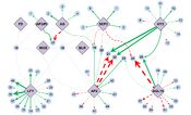 In particular, we analyze and engineer metabolic and gene regulatory networks in living systems. Metabolic pathways are "traffic maps" of carbon and other elements within cells (see figure above right) and gene regulatory networks (see figure bottom right) show how protein-DNA interactions control cellular activities. Such analysis provides insights into how metabolic bottlenecks can be relieved and how cellular performance can be boosted by strategically engineering select genes.