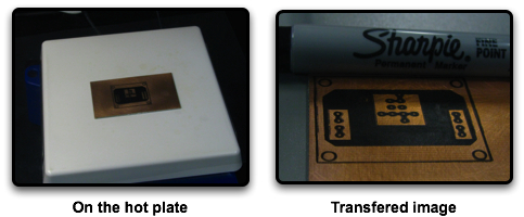 - Use either a hot plate or an iron to transfer the toner from your artwork to the copper proto-board.