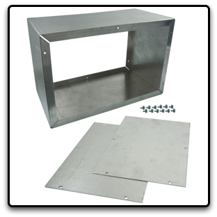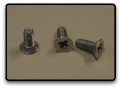After cutting the major hole for the front plate, we needed to drill holes in the enclosure such that the front plate mounted onto it. In order to do this we used self tapping screws that we scavenged from an old computer and the computer power supply. We were lucky to find these, however, if you cannot find self tapping screws, you can purchase them here. They are #4 screws that will just barely fit in the holes of the front plate. Actually, they will quasi tap themselves into the front plate but do not worry about it. If you can find #3 self tapping screws, you can use these which will clear the front plate holes entirely so that they tap into the enclosure only. Make sure to get the 1/4" length screws with a flat head.