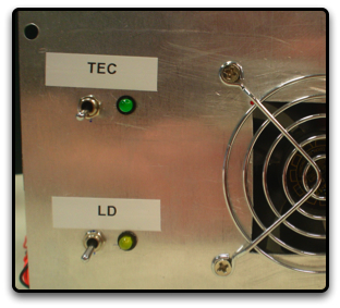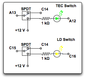 We used the green LED for the temperature controller on/off and the yellow LED for the laser diode on/off.