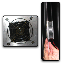 Ultimately we want to force air cooling on the circuits to maintain optimal performance of the system. To ensure proper air flow, we made an enclosure that suited our needs. Another reason for building an enclosure is to prevent extraneous signals from interfering with the circuitry. As is stated on page 2 of the manual "handy phones", i.e. cell phones, are not to be used within 3 meters of the circuits. Building a box around the circuits will help prevent any problems that may arise due to cell phone transmissions.