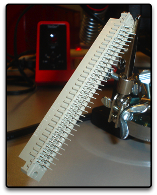 Now that you know how to make these wires, it is just a matter of connecting the correct pins on the circuit board to the correct pins on the switches and the back plane. You will want to make header connectors for the LEDs as well since they fit on our circuit board with header connections.