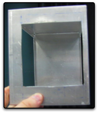 Since we are blowing in air to the enclosure we decided to also make a hole for air to escape. We did so by cutting out a square hole on the top of the enclosure and using another fan guard to prevent large objects from falling in to the circuitry. Follow the same procedure in making this hole as you did for making the large front plate and fan holes.