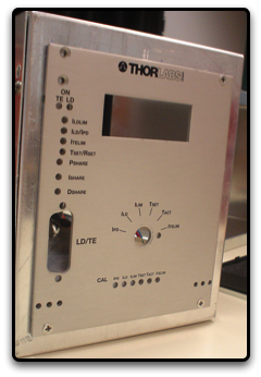 The ITC133 is an OEM product. This means that it has an incredible amount of functions that the user can make accessible by wiring the correct pins on the ITC133 back plane (ST1 in the manual). The system requires the user to wire on/off switches in order to send signals to the laser diode holder (TCLDM9) to either turn on or off the temperature controller or the laser diode. We opted for panel mount switches (SPDT) and panel mount LEDs, one yellow and one green to control the on/off functionality.