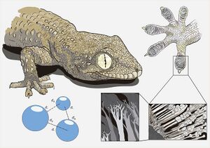 PDMS-based pick and place device assembly is greatly inspired by the controllable attachment and detachment capabilities of the fibrillar structures on gecko feet.[9] Geckos have the ability to selectively adhere to both smooth and rough surfaces by changing the contact area and angles between their feet and surfaces.[9] Mechanically deforming the fibrillar structures changes the contact area between structures and the substrate, which is what causes detachment from a surface.[9] Attaching to a surface is caused by van der Waals interactions between the two surfaces, which is also true for passive pick and place methods.[9] The control over the deformation of their feet fibers gives geckos the ability to be "self-cleaning", meaning they can shed dirt and debris from their feet without wetting.[9] Replicating the properties of self-cleaning and controllable adhesion in a rigid material like the fibrillar structures on gecko feet is desirable with respect to pick and place microfluidics since this method allows for microscale placement of items with accurate, clean adhesion that can easily be broken.[9]