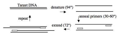 To begin your recombination study you will be performing a protocol called the Polymerase Chain Reaction (PCR). The applications of PCR are widespread, from forensics to molecular biology to evolution, but the goal of any PCR is the same: to generate many copies of DNA from a few. In 1984, Kary Mullis described this technique for amplifying DNA of known or unknown sequence (called the “target” or “template”).