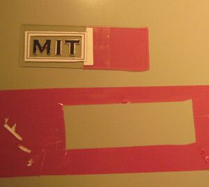 While the slide is drying, decide on your ECD design. What you choose should fit into a 1 inch by 1 inch box, as shown in the figure that is on the "talk" page of today's lab. As you think about what image to choose note that the area of your image that you want dark (i.e. visible) should remain under tape and you will cut out the areas that you want clear. Also note that current must be able to flow across to the image when we finally hook it up, so make sure that you leave your image connected to the rest of the ITO, unlike the "MIT" example shown in today's protocols. Print out three copies of your image: one for the slide and one for each of your notebooks.
