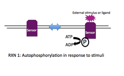 Rxn 1: ATP + SensorHis --> ADP + SensorHis~P