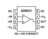 - OpAmp: #AD8031ANZ: a logic device that detects a difference in + and - current inputs and amplifies it.