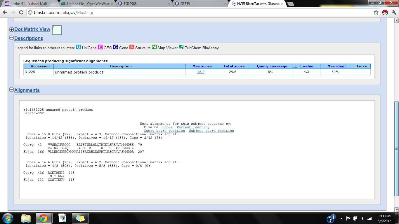 - Print and save a screenshot of the relevant alignment (using shift/command/4 or the Grab program under utilities), and draw conclusions about the alignment in your notebook. You might want to email the alignment screen shot to yourself or post it to your wiki userpage.