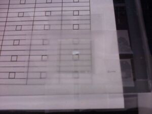 - With the coated side up, align your glass anode base onto a gridded template containing a 4mm x 4mm square so that the square appears in the center of the base.