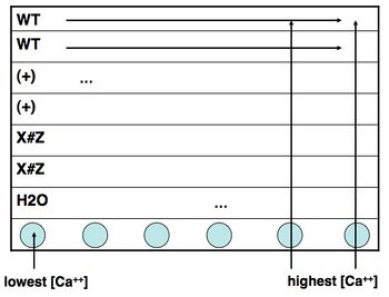 - Now work your way from reservoirs #2 to #12 (highest calcium concentration), and from the left-hand to the right-hand columns on your plate. Be sure to use fresh pipet tips each time! If you do contaminate a solution, let the teaching faculty know so they can put out some fresh solution. Honesty about a mistake is far preferred here to affecting every downstream experiment.
