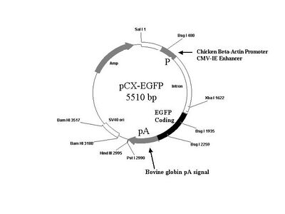 pCX-EGFP plasmid map: here (.pdf), here (.doc) or here (.rtf).