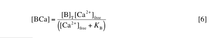 5. Validity of model assumptions. A key assumption of the model we are implementing is that values of kS and kB are determined by [Ca2+]rest, but do not otherwise depend on calcium concentration. According to this assumption, the change in [BCa] due to a single calcium transient should be approximately kBD[Ca2+]free. An exact equation relating [BCa] to [Ca2+]free may also be derived using [B]T and KB: