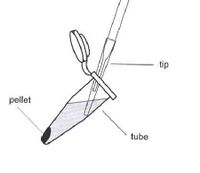 - A white pellet should be visible when you remove your tubes from the microfuge. Use your P1000 to transfer 400 ul of each supernatant to the appropriate clean eppendorf tube. It's OK to leave some of the supernatant behind. Avoid transferring any of the white pellet.