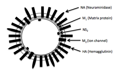 Influenza A viral genomes are composed of eight segments of negative-sense, single-stranded RNA that encodes 11 proteins. Segments 1, 2, and 3 encode subunits of RNA polymerase. Hemagluttinin (HA) is encoded on segment 4. A nucleoprotein (NP) is encoded on segment 5. Neuraminidase (NA) is encoded on segment 6. Two matrix proteins (M1 and M2) are encoded on RNA segment 7 from different reading frames. Segment 8 encodes two non-structural proteins (NS1 and NS2) from different reading frames. Subtypes of influenza A are categorized according to the HA and NA proteins, which are displayed on the surface of the viral envelope. There are 16 subtypes of HA and 9 subtypes of NA. In influenza A H5N1, the viral genome encodes HA subtype 5 and NA subtype 1. Because the M1 gene is less variable, it is a better target to use for your assay.