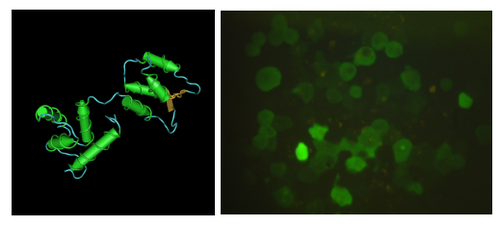 Once proteins are synthesized, their localization and conformation are critical to their function, but without “X-ray vision” to peer into a cell, these can be hard to detect. Fluorescence is one of the best tools in our toolkit for measuring proteins in living cells, allowing cellular functions to be probed unobtrusively. In this experimental module we will measure calcium fluctuations in living cells by tagging a calcium sensing protein with a fluorescent one. In the presence of calcium, the fluorescent protein will fold and the cells should appear green. We can transfect the genetically encoded calcium sensor into cells of interest, in this case mouse embryonic stem cells. Changes in fluorescence will allow us to quantitatively measure how chemical and physical perturbations affect calcium signaling in these cells.