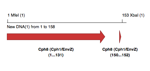 - NO297: fwd seq primer, start just upstream of Cph8 promoter
