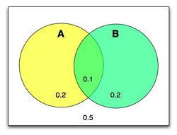 p(A|B)= 0.1 / (0.1+0.2) = 1/3 = p(A,B) / p(B)