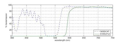 spectrum for our dichroics (the 565DCXT from Chroma Technology) is shown in Fig. 3.