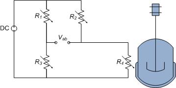 Figure 1 shows a resistor network known as a Wheatstone bridge. This is a common circuit used to measure an unknown resistance. Rx is the component being measured, and R3 is a variable resistor (often called a potentiometer or just a pot for no sensible reason).