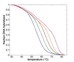 In this lab, you will measure the melting temperature of several DNA samples to determine the effect of sequence length, ionic strength and complementarity. A common application of this technique exploits the length dependence of DNA melting temperatures to examine PCR products in order to determine whether a desired sequence was successfully amplified.