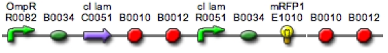 Aye yay yay!  Won't we ever get away from this Eau d'E coli project?  Not yet!  Take a close look at the device-level system diagram.  You can't see all the underlying BioBrick parts (there are ~24 parts in total).  If you were the designer of this system, do you think that the system would work if you just synthesized all the DNA as a single contiguous strand, transformed this new DNA into a cell, and let your genetic program rip!?  Or, stated differently, what would be your next step if you tried to get everything working at once, and NOTHING HAPPENED, or, even worse, your engineered DNA killed the cell?