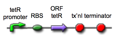 - Next your project team should work out a high level overview of the system's behavior for the coliform project and some pseudo-code to program this behavior. Finally write on the white board a block diagram that connects the inputs and outputs for the cell. You should not spend more than 10 minutes on this activity. When you are done, delegate someone to explain what you've done as a team and what questions arose as you worked. Then you and your team can get right to work on the last thing planned for today's lecture.